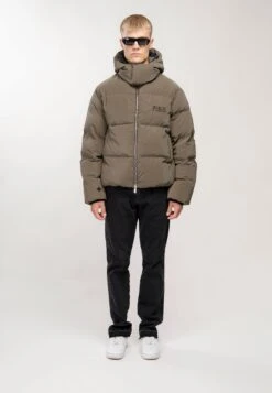 Unisex Chest Logo Puffer Jacket – Winter Jacket – Olive Green